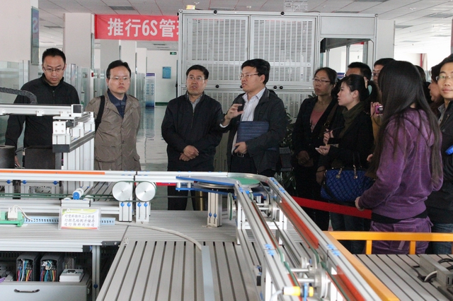 在兰州石化职业技术公司电子电气工程系马应魁主任的陪同下,参观了电子电工技术、自动控制、检测及维修技术等实训基地,马主任对各实训实验室功能、设备的来源、型号、配置、软硬件建设、设备的管理与维修等相关问题
