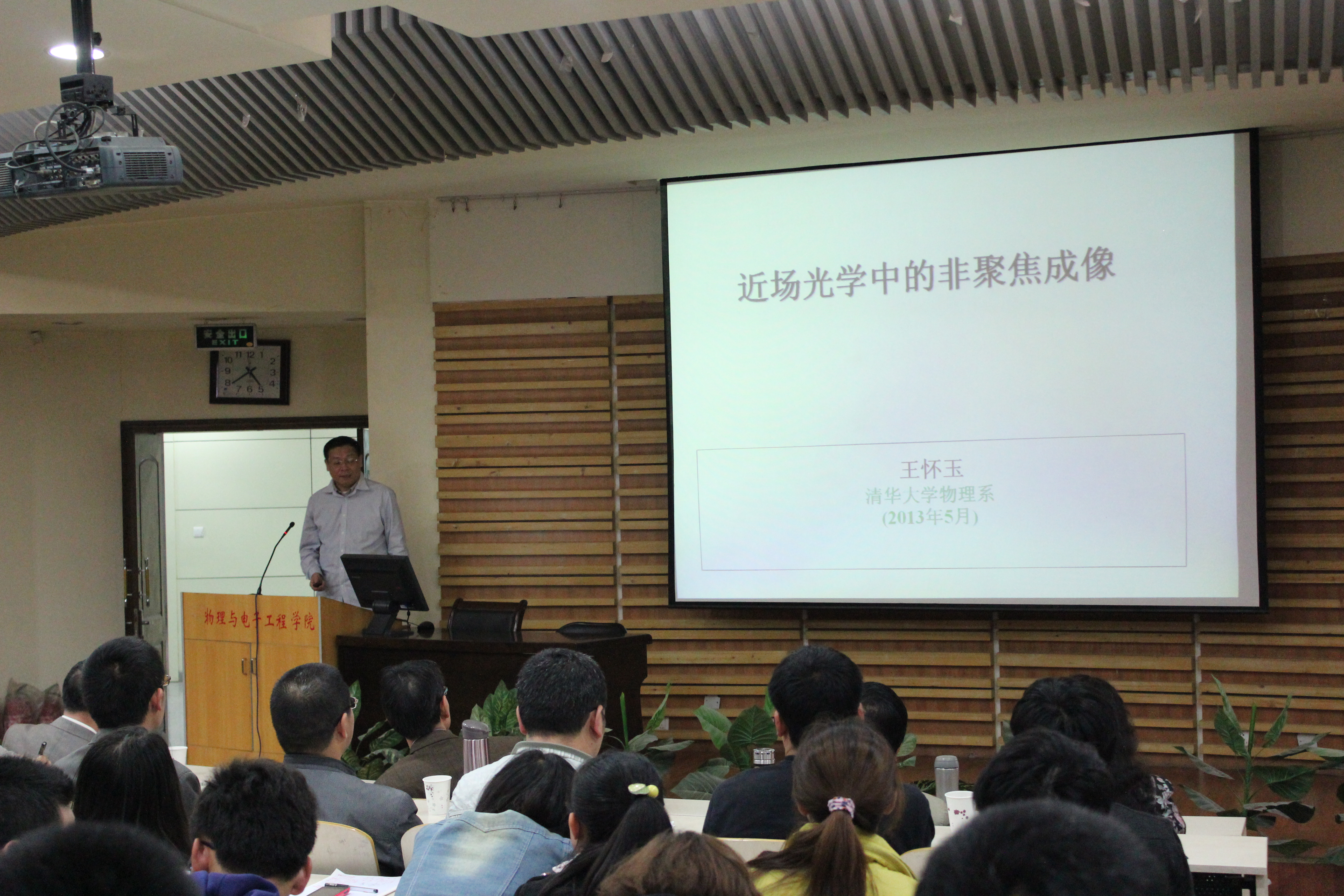5月14日下午,国家杰出青年基金获得者、教育部教学指导委员会委员、厦门大学博士生导师赵鸿教授、清华大学博士生导师王怀玉教授应邀在教学9号楼A409分别作了题为《物理学:天空的乌云和地上的沼泽》和《近场光学的非聚焦成像》的学术报告,报告由bevictor伟德副经理、博士生导师薛具奎教授主持,公司200余名师生聆听了报告。报告会上,赵鸿教授从物理学的发展历史谈起,深入浅出地介绍了物理学研究的主要内容和有趣问题,进而介绍了活跃在当今物理学前沿的暗物质、暗能量及黑洞等“乌云”和“沼泽”。最后,赵教授就本科生如何参与科学研究与同学们进行了讨论,并勉励同学积极投身物理学研究。王怀玉教授就负折射率及非聚焦成像等方面介绍了近年来相关研究进展,并与参加报告会的师生展开了热烈讨论。报告生动有趣,不时引发听众的共鸣。最后,大家积极提问,就其中的一些问题与王教授进行了深入探讨。