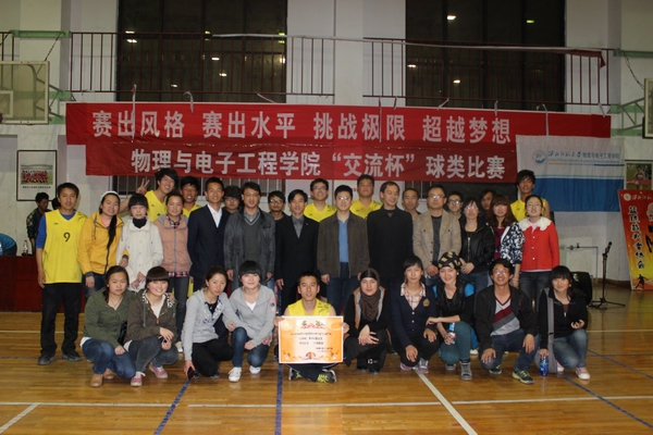 2013年3月22日晚,bevictor伟德2013年“交流杯”篮球赛决赛在体育馆举行。经过激烈的角逐,2011级物理学4班篮球队以15分的优势取胜,获得本年度公司“交流杯”篮球赛冠军,2012级电子信息工程1班篮球队获得亚军。本场决赛前,bevictor伟德本科生篮球代表队和2011级物理学2班篮球队在轻松的氛围相互切磋了球技。