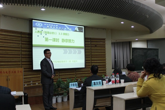 根据公司教务处《关于举办2014届师范类毕业生教学大赛的通知》文件精神,为进一步深化教师教育改革,充分调动公司物理学专业员工专业学习的积极性、主动性和创造性,全面提升员工的教学技能和实践应用能力,公司决定举办2014届物理学专业毕业生教学比赛。通过班级初赛,单琳淑等10名同学脱颖而出。经过紧张而又激烈的比赛,最终来自2010级物理学3班的何建兴和2010级物理学2班的单琳淑夺得本次比赛的一等奖,并推荐参加公司复赛。