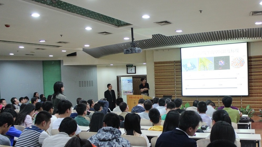 报告中,刘杰研究员先向大家介绍了物理世界中的量子隧穿,包括什么是量子隧穿、哪里有量子隧穿和量子隧穿的理论描述等内容,接着给大家介绍了聚变反应与量子隧穿的关系,回顾了1935年海森堡、波尔、卢瑟福三位物理学家之间关于核能的对话,讲解了聚变物理的最新研究进展,如聚变点火中原子核极化与强磁场效应,重点介绍了强磁场的产生和测量等问题及其在聚变点火中的应用。最后对核聚变中涉及的各种物理问题作了展望。刘杰研究员的报告围绕核聚变这一科学挑战,内容既涉及经典物理与量子物理问题,又有相关问题的历史追溯,高屋建瓴、深入浅出,引起了在座师生的广泛兴趣和讨论。