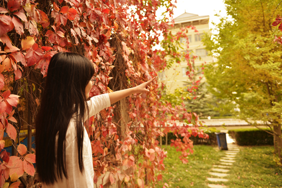 漫步在林荫道,享受每一片落叶的亲昵;拿起相机,定格下每一束花朵的绽放和凋零;走进东操场,让脚步亲吻跑道水洼里那最后的蓝天白云。我们一定会让那些无趣的人羡慕,秋天如果一定要走,请先经过我们的心里!