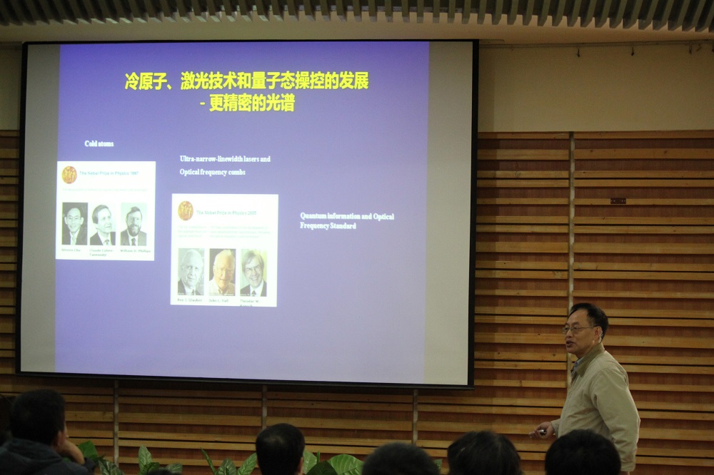 2016年4月22日,中国科公司武汉物理与数学研究所高克林研究员、李润兵副研究员、王杰副研究员等四人来公司进行研究生招生宣讲和学术交流。期间,高克林研究员和李润兵副研究员分别为公司师生作了题为“原子光物理”和“冷原子干涉仪及其在精密测量中的应用”的学术报告,深入介绍了武汉物理与数学研究所在囚禁冷却离子光频标以及精密谱研究方面的研究成果,并与师生进行了热烈的讨论。