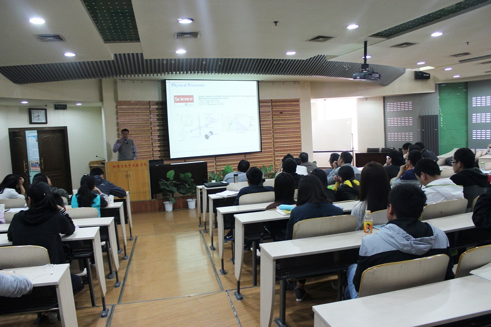 4月29日下午,公司在教学9号楼A409报告厅举行了本学期第二场教师系列学术报告,符彦飙教授和李鹏程副教授分别作了题为“天文学概论”和“从头算研究强激光场中多电子原子分子的动力学过程”的学术报告。报告会由公司副经理张登红副教授主持。公司教师、研究生和本科生约100余人参加了报告会。
