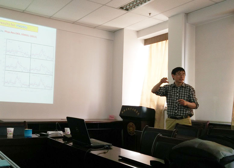 5月5日,应公司贾多杰教授的邀请,中国科公司近代物理研究所陈殿勇副研究员来公司进行学术交流,并在教学9号楼A701室作了题为“An introduction to XYZ particles”的学术报告,公司相关教师、研究生和本科生约50余人参加了报告会。