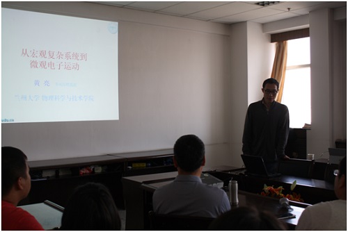 黄亮教授的报告从宏观的统计物理开始,介绍复杂系统研究中的一些概念及相关研究进展,脑电波数据分析及脑神经元模型等,接着介绍非线性动力学,介绍混沌、同步、以及微米纳米尺度下的非线性振动问题,进而介绍小尺度下石墨烯器件中的电子输运行为,并以此为平台研究相对论性Dirac粒子的输运行为及其与经典混沌现象的一些对应。