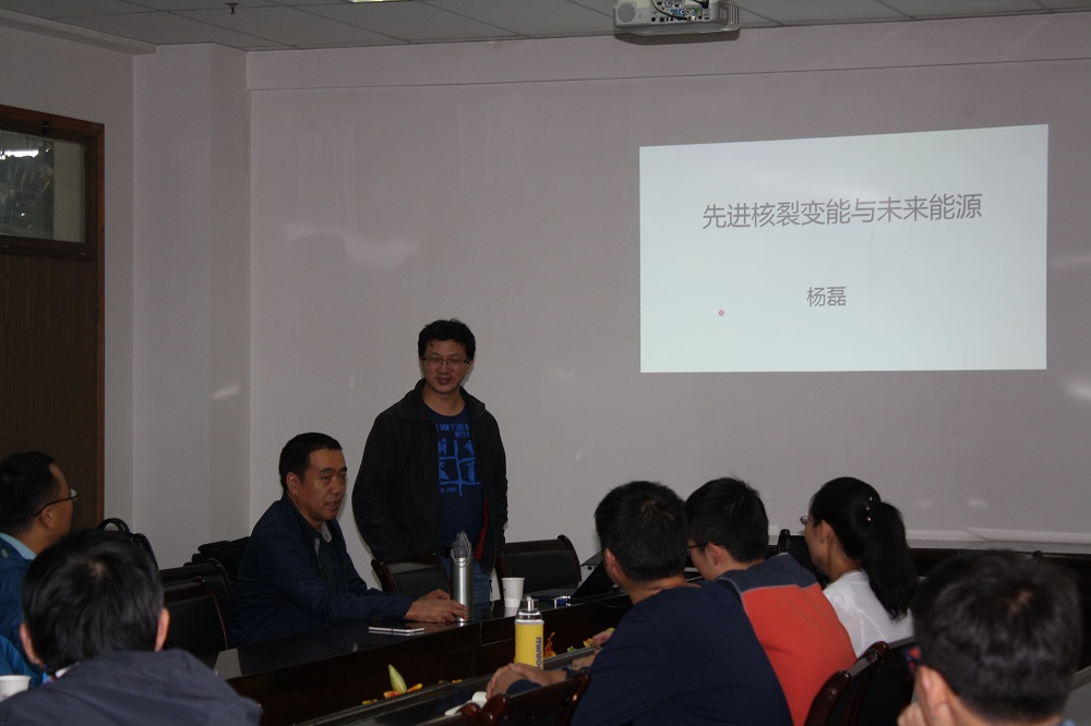 杨磊研究员首先讲述了未来新型能源对人类的重要性,接着讲述了裂变核能的发展历程、核乏料处理现状、面临的机遇与挑战、以及理想的解决方案加速器驱动的先进核能系统ADANES,最后介绍了世界能源的发展格局,并对可再生资源作了详细的探讨。杨磊研究员的报告高瞻远瞩,内容细致丰富,引起了在座师生的广泛兴趣。
