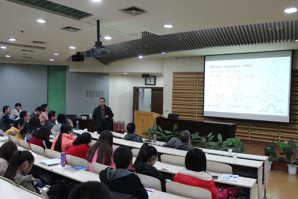 10月28日下午,在教学9号楼A409报告厅举行了公司教师系列学术报告,苟学强副教授和万建杰副教授分别作了题为“分形及其在闪电中的应用”和“原子离子的Compton轮廓”的学术报告。报告会由赵松峰教授主持。公司教师、研究生和本科生约120余人参加了报告会。