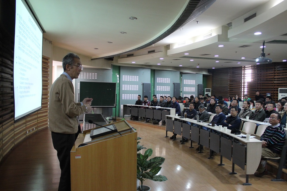 在报告中,潘光文教授介绍了自己丰富的求学和工作经历,然后介绍了自己在计算电磁学、微波与毫米波的技术与系统方面的科研成果,如高精度宽频测定基底材料的介电常数和损耗角、212 GHz鳍线变换器的设计、粗糙面散射的计算模拟与测量、小型化头部核磁共振MIR的设计、合成孔径雷达的设计与计算、60GHz近距离通讯系统天线系统的设计与实现、卫星毫米波辐射计的研发。报告中既涉及的基础理论和算法介绍,又有具体应用研究案例,内容新颖,引起了在座老师和同学们的广泛兴趣。报告完后,潘光文回答了师生们的提问,并给同学们详细介绍了美国留学应该准备的一些条件,勉励同学们进一步求学深造。