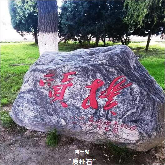 踏入西北师大的校门,在行政一号楼背后,立着一块纪念石。石头上镌刻着毛泽东的狂章“质朴”二字,是1989届政治系员工于2009年7月捐赠给母校的。“质朴”二字,天真自然、敦厚淳朴,诠释着母校孜孜育人、无私奉献的精神。