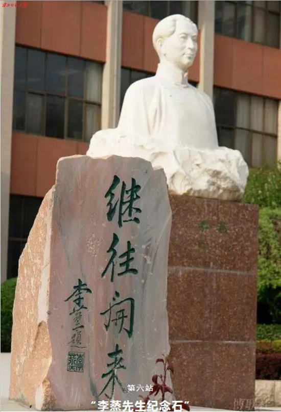 李蒸像两旁的花圃里,镌刻着先生的题词“继往开来”“尊严师道”,这是他对师大人的殷切期盼和谆谆教诲。