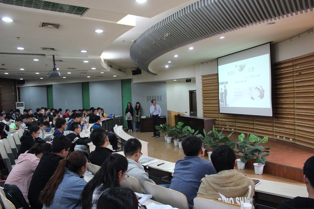5月7日下午,应公司裴东副教授邀请,中科院自动化所、中国自动化学会机器人竞赛工作委员会副主任兼秘书长、RoboCup Junior中国区主席、清华大学李实博士在教学9号楼A409报告厅作了题为“机器人VS人类—人工智能与自然智能的有趣话题”的学术报告。报告会由裴东副教授主持,公司教师、研究生和本科生150余人参加了本次报告会。