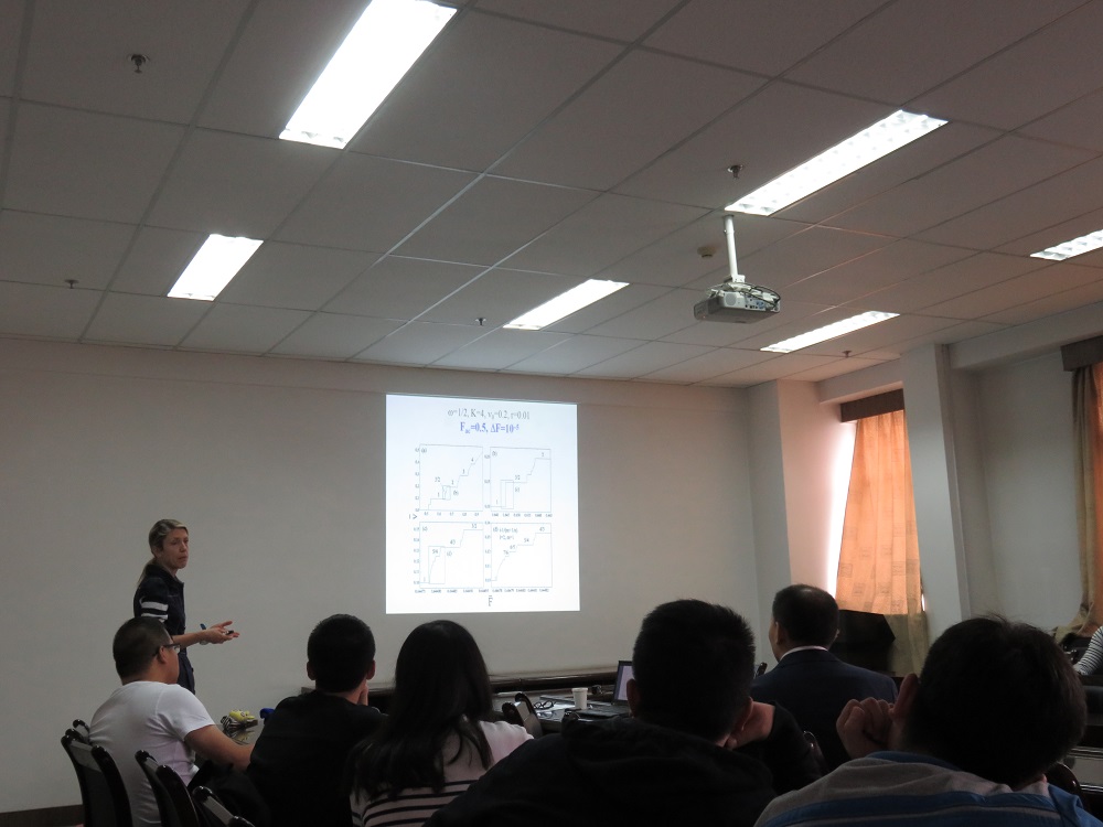 2017年5月22日,在国家自然科学基金“理论物理专业等离子体方向学术交流与平台建设”项目的资助下,应公司段文山教授邀请, 塞尔维亚核科学研究所Jasmina Tekić 教授在教学9号楼A701做了题为“在交流驱动下的过阻尼FK模型中魔鬼的阶梯和混沌的存在”的学术报告。报告中,Jasmina教授简单介绍了FK模型及系统的动力学特点、Shapiro台阶及其阶数和尺寸的相关研究、频锁和数论的关系,指出在ac FK模型下可以观察到devil's staircase,接着介绍了分数维度,最后介绍了如何找寻混沌,并解释了在过阻尼FK模型中不存在混沌的原因。