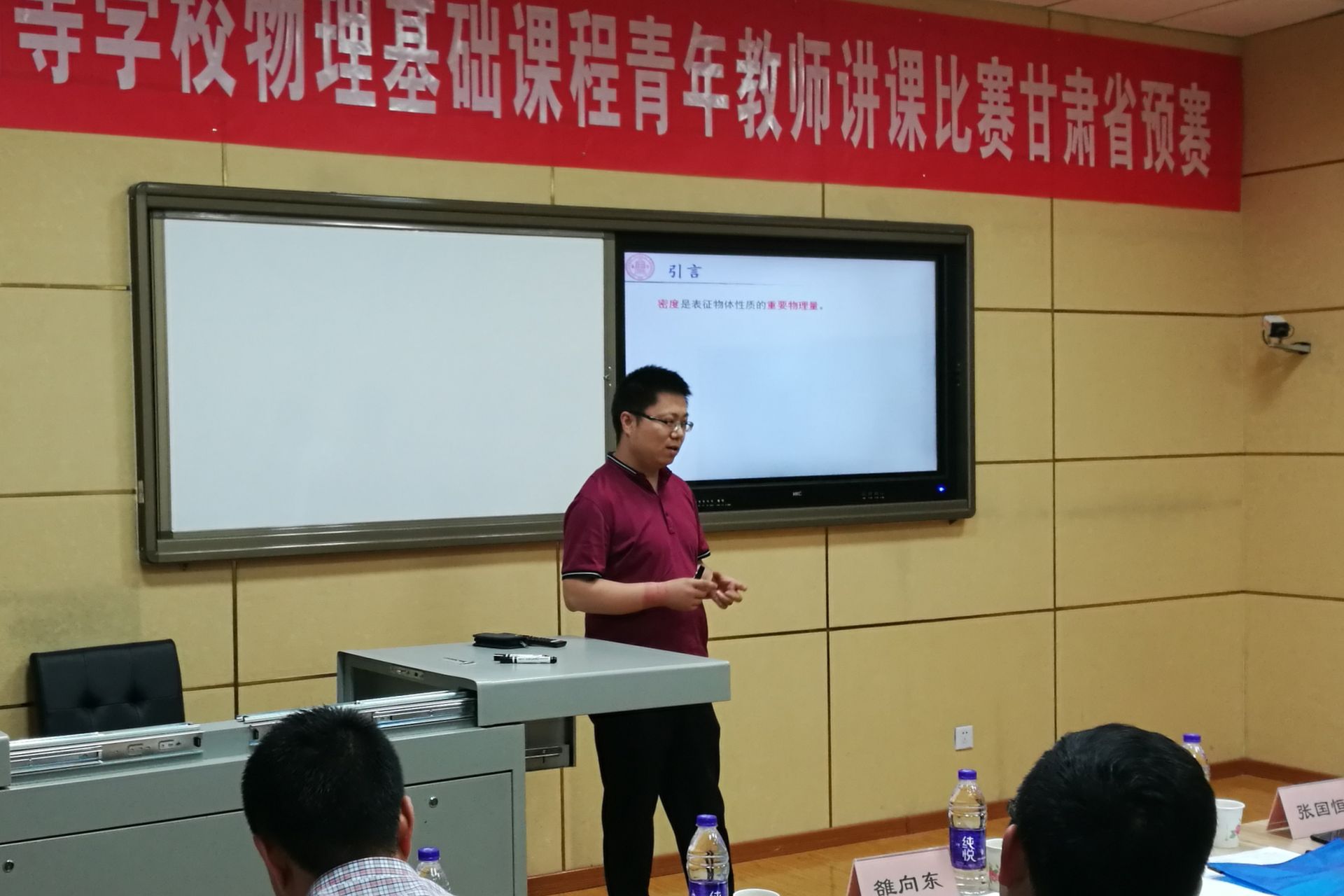 2017年6 月11日,第三届全国高等公司物理基础课程青年教师讲课比赛甘肃省预赛在兰州理工大学举行。本届赛事首次以大学物理实验课程作为比赛内容,参赛选手均为省内各高等院校物理实验课程的主力优秀教师。公司实验中心教师王建副教授和李金赟博士代表公司参赛,在比赛中展现了突出的教学能力和良好的精神风貌。经过激烈竞争,王建副教授获得一等奖,李金赟博士获得三等奖。7月初,王建副教授将赴西安交通大学代表甘肃省参加该项赛事的西北地区复赛。