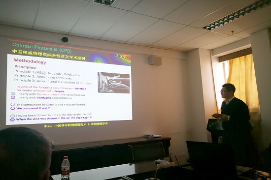 2017年12月20日上午10:10在教学9号楼A区701会议室,受公司周效信教授邀请,《中国物理B》杂志责任编辑翟振博士向全院师生作了题为“Publishing your papers in scientific journals: A talk to improve writing and publishing skills”的报告。报告由洪学仁副经理主持。