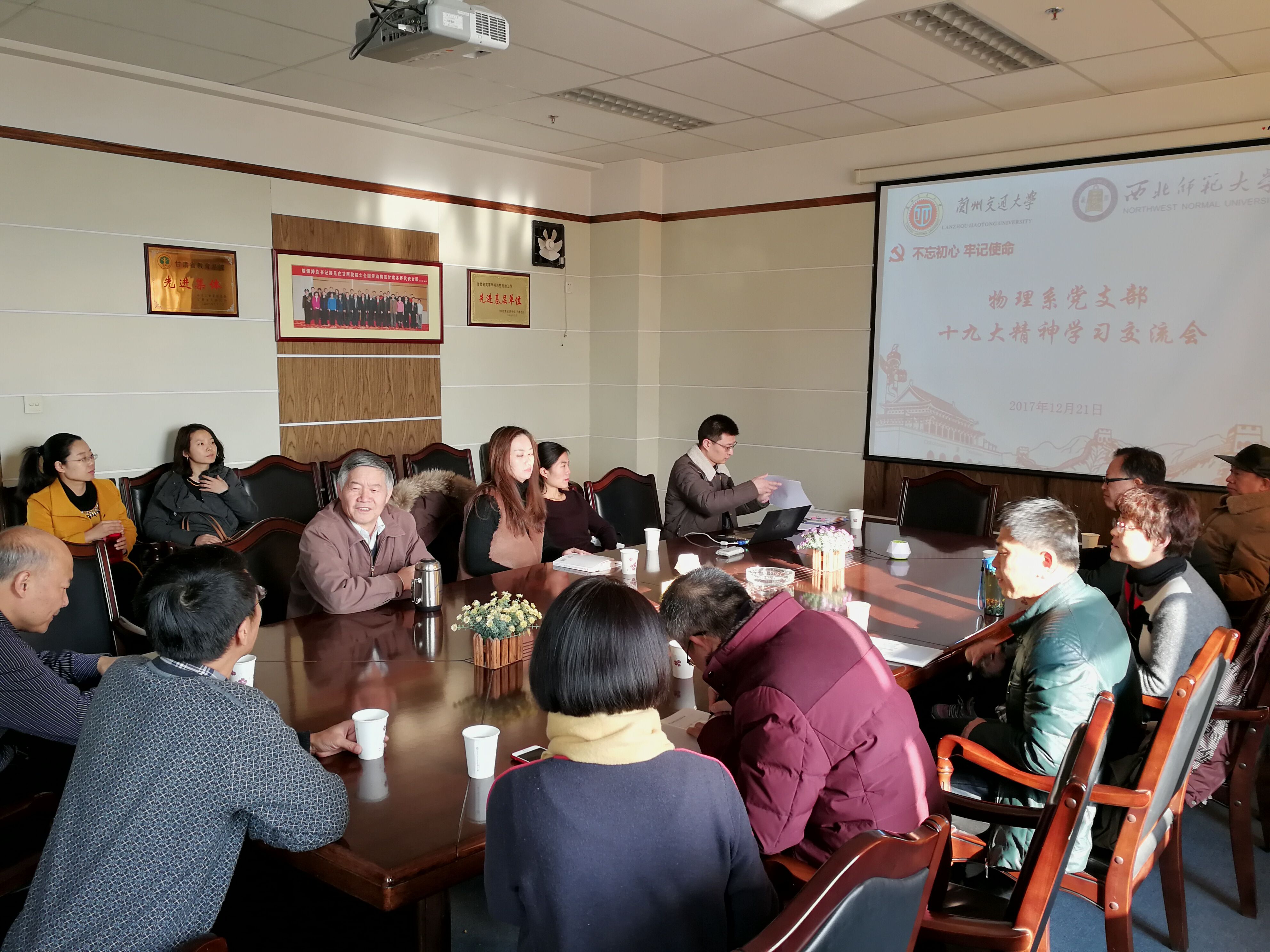 为进一步提升基层党建工作科学化水平、加强交流基层党支部工作的先进经验、搭建基层党组织相互学习的平台、深入学习十九大精神。12月21日下午,bevictor伟德物理系教工党支部和兰州交通大学物理系教工党支部在教学9 号楼810会议室首次联合开展党的十九大精神学习交流会。双方支部书记及党员代表参加了本次会议,公司党委书记裴东同志到会指导。