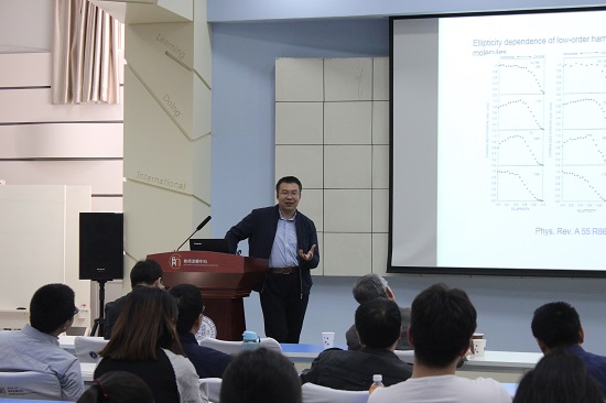 论坛上,袁建民教授、李鹏程副教授、韩丽丽副教授和焦志宏讲师4位学者分别作了题为《强x-射线激光和原子体系相互作用动力学》、《强激光场中原子分子产生高次谐波的动力学过程研究》、《基于4f-4f跃迁稀土离子能量传递的发光控制和应用》和《超短激光驱动气体等离子体的辐射研究》的学术报告。报告中,4位学者结合报告专题,围绕各自学科背景、研究方向阐述其学术思想,介绍研究领域新进展,分享其科研历程及收获。