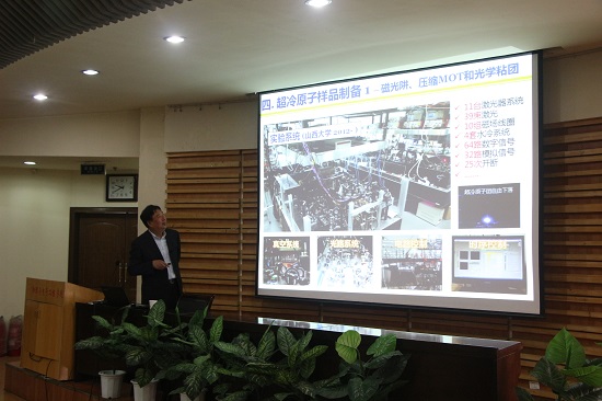 贾锁堂教授首先介绍了山西大学和量子光学与光量子器件国家重点实验室的基本情况,然后从“超冷分子研究背景”、“超冷分子的密集制备及光谱测量”、“超冷原子-分子系统的外场操控”和“总结与展望”四个方面对超冷分子的密集制备与外场操控作了详细地报告。