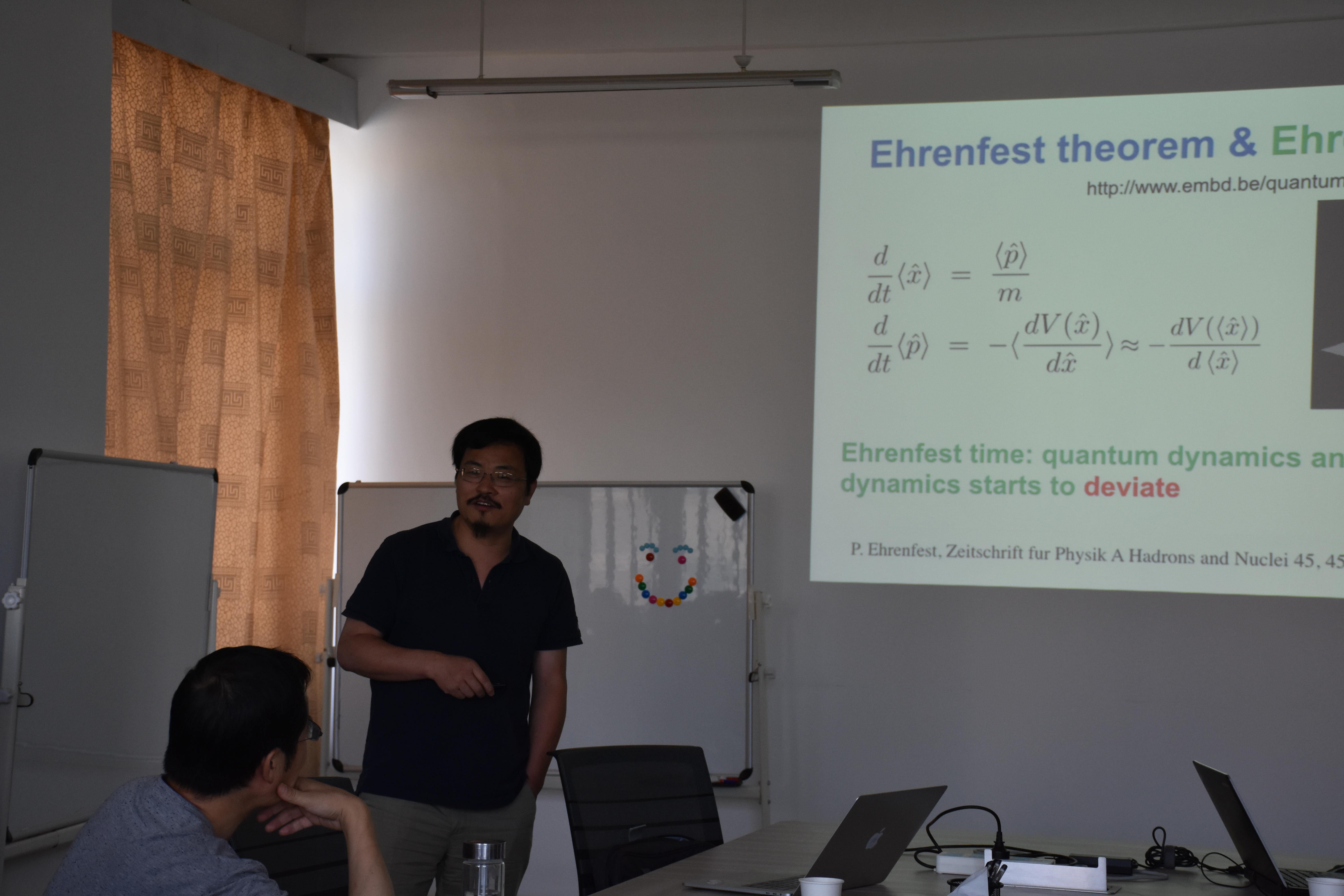7月13日下午,在国家自然科学基金“伟德国际1946理论物理学术交流与平台建设”项目的资助下,应公司薛具奎教授邀请,北京大学吴飙教授和北京应用物理与计算数学研究所刘杰研究员在教学9号楼A1103会议室分别做了题为“Ehrenfest time in Bose gases”和“Adiabatic Theory for BECs”的学术报告。