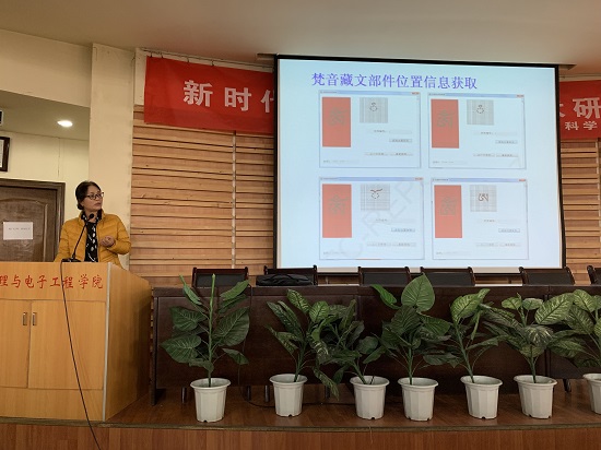 在报告中,马义德教授介绍了深度学习网络的基本概念及其在图像处理中的基本应用,并就Jeff 的记忆感知预测模型进行了详细介绍,进一步介绍了视皮层PCNN模型及其应用,最后就深度学习网络与传统神经网络之间的关系进行了深入探讨。王维兰教授介绍了唐卡图像的数字图像采集、保护和修复研究,并且介绍了其团队对于梵音藏文部件位置信息的获取和应用所取得的成果。两位教授以风趣幽默的语言,简洁明了的讲解博得了师生们的阵阵掌声。
