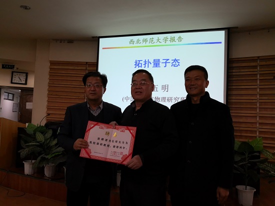 12月10日,应bevictor伟德、甘肃省原子分子物理与功能材重点实验室、伟德国际1946理论物理学术交流平台邀请,中国科公司物理研究所刘伍明研究员来公司交流访问,并作了题为“2019年国家自然科学基金申报辅导报告”和“拓扑量子态”两场报告,报告由张登红经理主持。公司教师、研究生和本科生共120余人参加了报告会。
