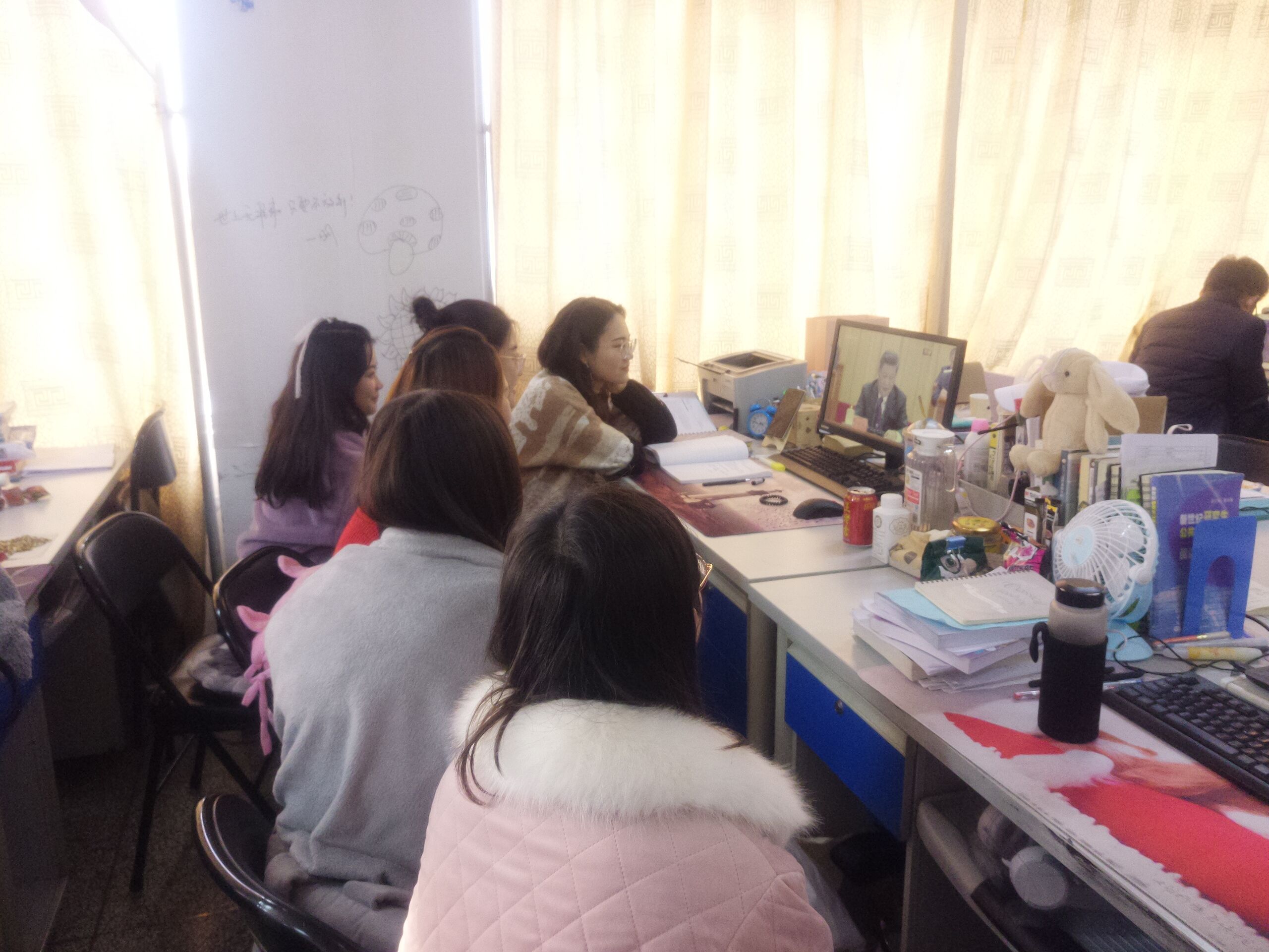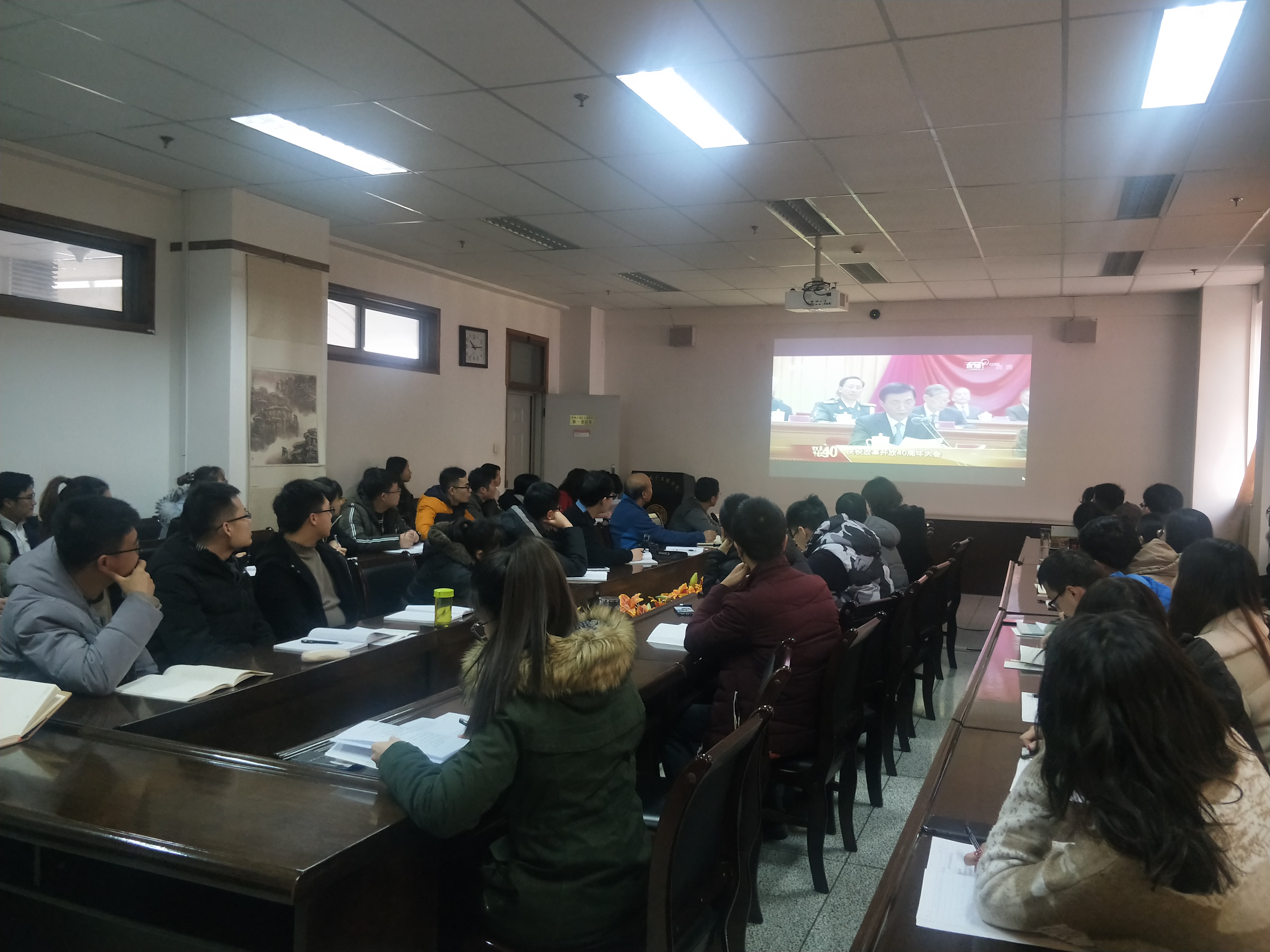 2018年12月18日上午,物理与电子工程公司组织师生集中在教学9号楼701会议室收看纪念改革开放40周年大会,其他师生以不同形式观看大会直播。