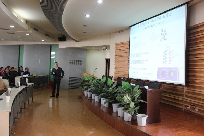 报告中,薛具奎教授从激光诱导等离子体波及其对电子加速的基本物理过程出发,着重介绍基于等离子体通道的激光驱动电子加速物理问题,探讨产生高能电子以及空间超紧凑、高质量太赫兹光束和等离子体波加速的有效方法。
