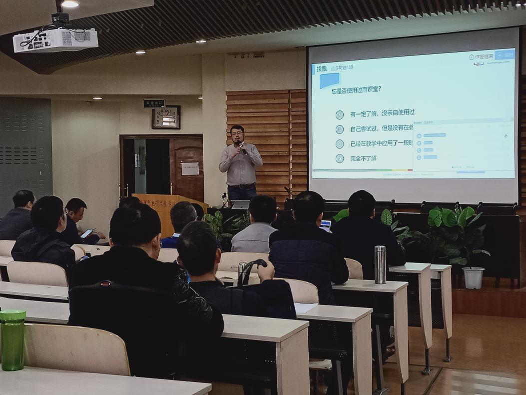 为深入学习贯彻落实全国教育大会、新时代全国高等公司本科教育工作会议精神,以及《伟德国际1946一流本科教育建设行动计划》(西师本科教育100条)的指导及要求,深化公司产品改革、提高信息化教育手段在教学中的融合和运用。2019年11月21日,bevictor伟德邀请教育部在线教育研究中心课程顾问、清华大学学堂在线产品培训部资深讲师申正宇老师来公司作了“轻松玩转雨课堂”的专题报告。“雨课堂”是由学堂在线与清华大学在线教育办公室共同研发,旨在连接师生的智能终端,能将课前-课上-课后的每一个环节都赋予全新的体验,最大限度地释放教与学的能量,推动教学改革。