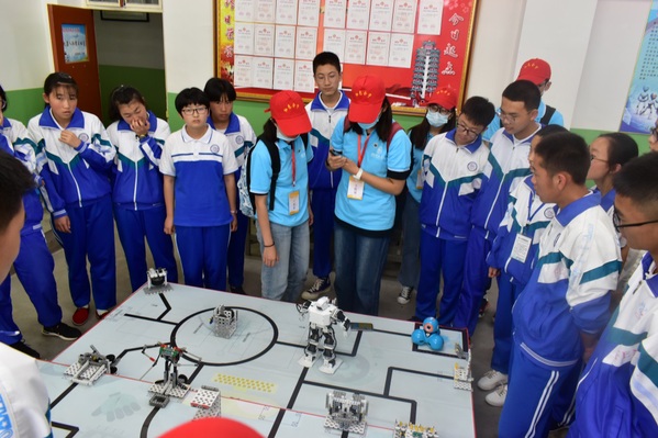 7月20日,小分队分别走访了会宁县教育局、会宁县第一中学和会宁县高级职业技术中学。在会宁一中,小分队成员与同学们就“互联网+教育”、人工智能等主题进行了交流讨论,并向他们展示了积木式编程,演示了机器人舞蹈和智能车操控。在活动过程中,同学们对人工智能表现出了浓厚的兴趣,各种奇思妙想不断闪现,同学们纷纷提出自己的设想和疑惑,小分队成员结合专业知识和人工智能发展的最新进展,做了耐心细致地讲解。现场气氛友好活跃,通过此次交流,小分队不仅宣传了bevictor伟德创新创业团队建设及其创新成果,而且和会宁第一中学的同学们建立了深厚的友谊。