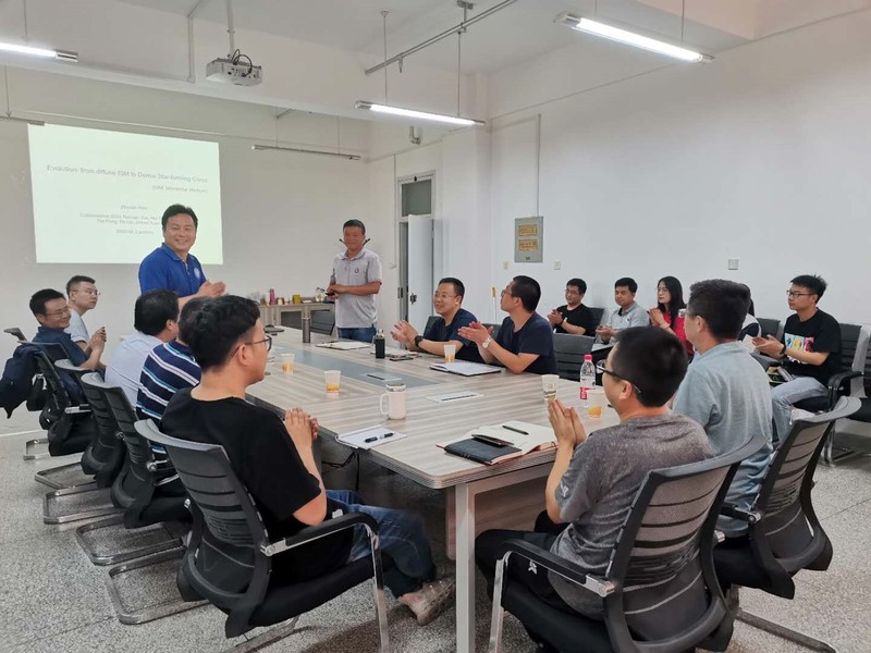 任致远助理研究员分别从星际介质(ISM)的总体演化图景、纤维状⽓体结构的物理性质和动⼒学以及ISM与恒星形成的谱线观测方面做了详细介绍。在场师生踊跃提问,与任志远研究员进行了深入的交流探讨。