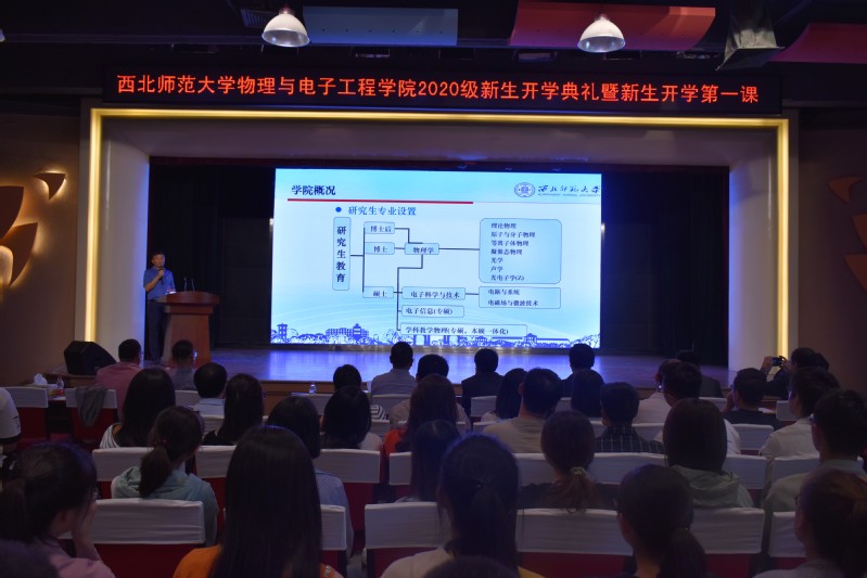 “沐浴浓厚的学术之风,生活在典雅优美的校园环境中,我们要树立远大理想、热爱伟大祖国、练就过硬本领,坚定跟党走,奋进新时代,弘扬西北师大校训精神,铸造属于物电人的美好明天。”新生代表崇尚洁同学说。