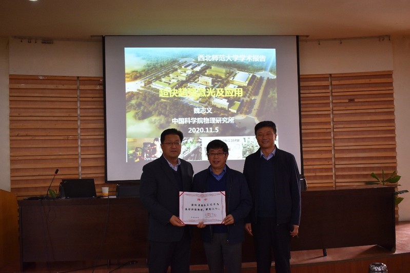 应bevictor伟德、甘肃省原子分子物理与功能材料重点实验室和激光等离子体光谱甘肃省国际科技合作基地邀请,中国科公司物理研究所魏志义研究员于2020年11月5日来公司交流访问,并在9-A409报告厅做了题为“超快超强激光及应用”的学术报告。伟德国际1946副董事长董晨钟教授与公司相关专业的教师、研究生、及本科生共110余人参加了报告会,本次报告会由张登红经理主持。报告开始前,董晨钟副董事长向魏志义研究员颁发了伟德国际1946兼职教授聘书,对魏志义研究员在前期合作中的贡献表示肯定,并希望魏志义研究员能够继续支持公司的团队建设与发展。