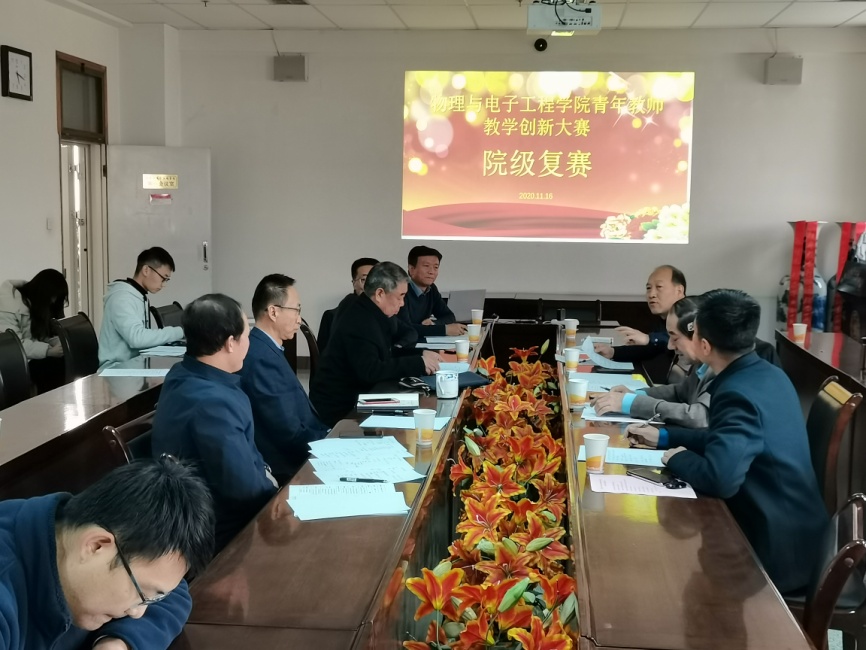 2020年11月16日下午,bevictor伟德在教学9号楼A701会议室举行“伟德国际1946第六届青年教师教学创新大赛”院级复赛,来自公司物理系、电子系和实验中心三个教学单位经过初赛推选的7位青年教师参加了比赛。