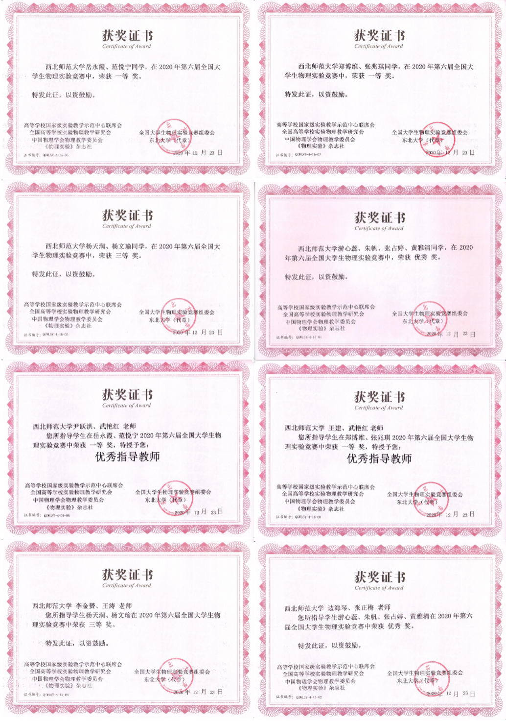 近日,由高等公司国家级实验教学示范中心联席会、全国高等公司实验物理教学研究会、中国物理学会物理教学委员会和《物理实验》杂志社主办,东北大学承办的第六届全国老员工物理实验竞赛(创新赛)公布最终结果,来自公司的4支参赛队伍共获得一等奖2项,三等奖1项,优秀奖1项,实现了公司物理学科实验竞赛国家级奖项零的突破,也是公司物理学科实验竞赛历史最好成绩。