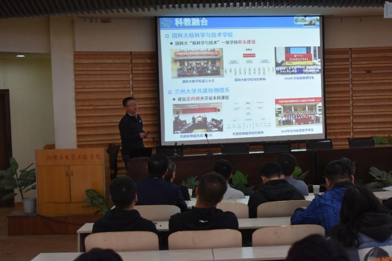 袁小华处长首先介绍了中科院近代物理研究所和兰州重离子加速器国家重点实验室的总体情况,包括发展历史、实验条件、研究领域、发展规划以及人才培养等,重点就研究生招生、培养及科教融合、协同育人等方面所开展的工作和取得的成就给公司师生进行了介绍。同时,也表达了鼓励和欢迎公司物理、电子相关专业员工去近物所开展实习、毕业设计以及攻读研究生的意愿。