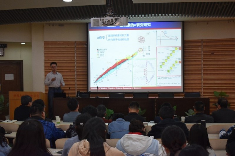 张志远研究员做了“缺中子锕系新核素合成和近物所超重核实验研究进展”的学术报告。报告中,张志远研究员介绍了核素和元素合成的研究背景、新核素、元素合成的实验方法,并介绍了他们课题组在充气反冲核谱仪SHANS上开展的锕系新核素合成方面最新的实验研究进展,以及未来在超重核实验研究方面的计划。张志远研究员是公司物理学专业2007届优秀毕业生,毕业后被免试推荐至中科院近代物理研究所通过硕博连读的方式攻读博士学位,后赴德国重离子研究中心(GSI)作访问学者。目前主要从事重核和超重核的实验研究工作,曾获得第七届“胡济民教育科学奖”,发表SCI论文20余篇,其中以第一或通讯作者在Phys. Rev. Lett.发表论文三篇。他表示,能回到母校给学弟、学妹们介绍自己的研究工作感到非常激动,也十分感谢母校对自己多年的培养。