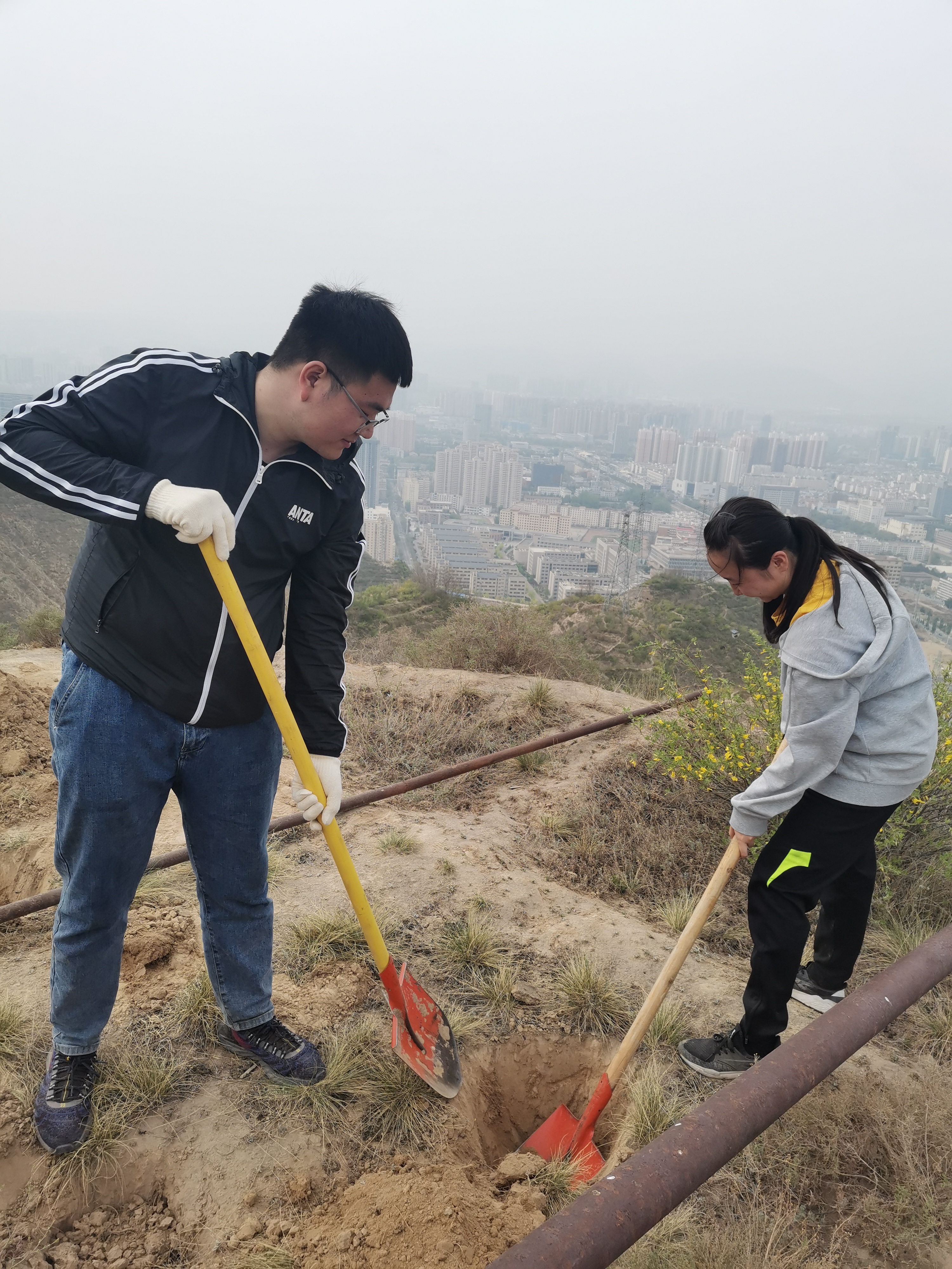 在和煦的春风中,同学们挥锹挖坑、铲土围堰,植树现场各个同学精神抖擞、干劲十足、热情高涨。公司员工工作负责人在义务植树劳动中,一方面要求同学们注意安全,保质保量完成植树任务;另一方面要求同学们要弘扬劳动精神,发扬中华民族爱树、植树、护树的好传统,崇尚劳动、尊重劳动。