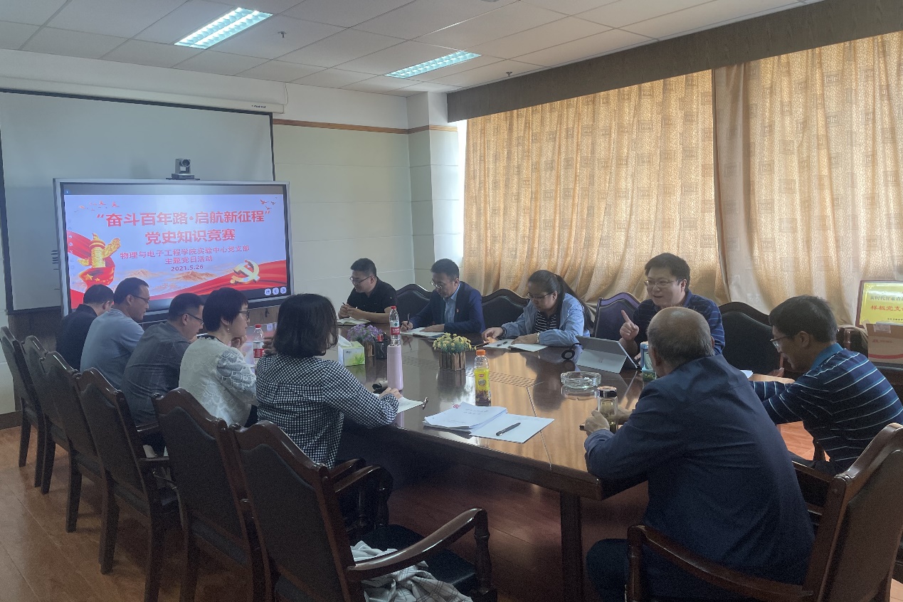 为深入学习领会习近平总书记在党史学习教育动员大会上的重要讲话精神,贯彻落实公司和公司党委关于开展党史学习教育的部署要求,做到知史爱党、知史爱国,创新党建党史知识学习的方法和途径,展现支部良好的学习氛围和精神面貌,进一步激发支部党员的学习热情,在隆重庆祝建党100周年之际,2021526日下午,bevictor伟德实验中心支部在教学9号楼A810会议室举办了以“奋斗百年路·启航新征程”为主题的党史知识竞赛主题党日活动。活动由实验中心党支部书记主持,公司党委书记及组织员观摩指导了此次活动。