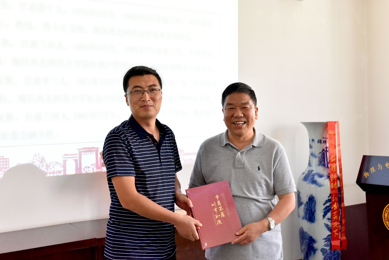 教师代表陈宏善教授回忆了和王老师共事期间的经历:王成伟老师在岗期间,师德高尚,治学严谨,学风正派,勤恳敬业,教学科研成果突出,并称王老师他们的“老大哥”,也是公认“老黄牛”,祝愿王老师有一个幸福愉快的晚年。青年教师代表李燕老师发言:感谢王老师对青年教师的培养,夕阳无限好,晚霞别样红,祝愿王老师积极愉快的面对退休生活。