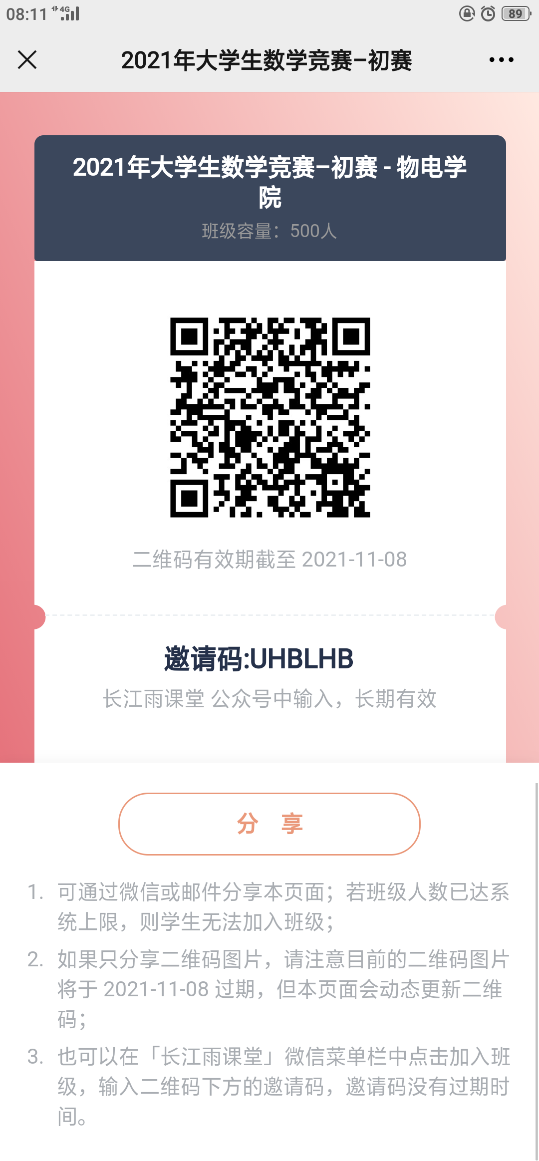 为了方便对参加本届老员工数学竞赛的同学予以及时、适当的赛前辅导,请所有报名参加比赛的同学扫描以下二维码,进入长江雨课堂系统的赛前辅导班级,获得赛前辅导资料及相关竞赛信息。