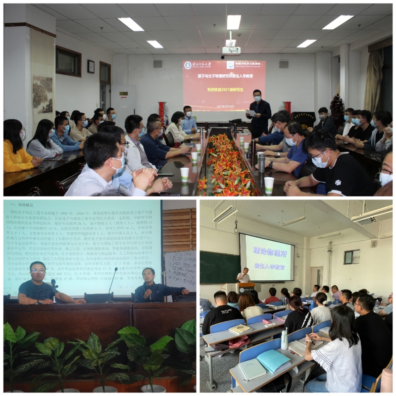 博士生导师袁萍在原子与分子物理研究所入学教育活动中作为导师代表向新生提出了宝贵的建议,希望研究生要注重锻炼学习能力、科研能力和分析思考问题的能力;要学会为人处事和培养合作精神;要合理安排时间并注重能力的锻炼、注重品德修养和心理素质提高。高年级研究生代表何文亮分享了自己在研究生阶段学习的体会,建议师弟师妹们要主动学习、有创新意识、有吃苦精神、保持对科研的兴趣和激情、加强体育锻炼等。经理张登红分析了当前研究生的就业形势,要求大家要有紧迫感,做到按时毕业、及时就业。博士生导师陈宏善给新生提出了期望,希望同学们脚踏实地学好每门专业课,科研中要能静下心,严格要求自己,做一个有自控力的人。