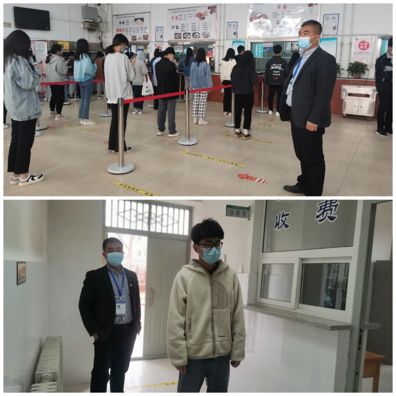 辅导员秦志荣老师被派往入住知行校区开展疫情防控工作。除了担负每天在知行校区各重点区域值勤工作外,还要组织研究生进行核酸检测,组织员工志愿者进行值勤,及时处理、上报、传达、发布各种疫情防控数据、报表、通知、公告,走访员工宿舍,了解员工上课、生活等问题,关心慰问特殊情况员工,解决员工困难,陪同患病员工前往知行校区门诊治疗……,忙碌的身影穿梭在广场、食堂、公寓之间,每天还要用已经嘶哑的嗓音不断提醒同学们保持安全距离,注意防护。繁琐、冗杂的事务一个接着一个,电话沟通24小时不间断、线上会议安排工作常常进行到深夜,辅导员老师毫无怨言,迎难而上。