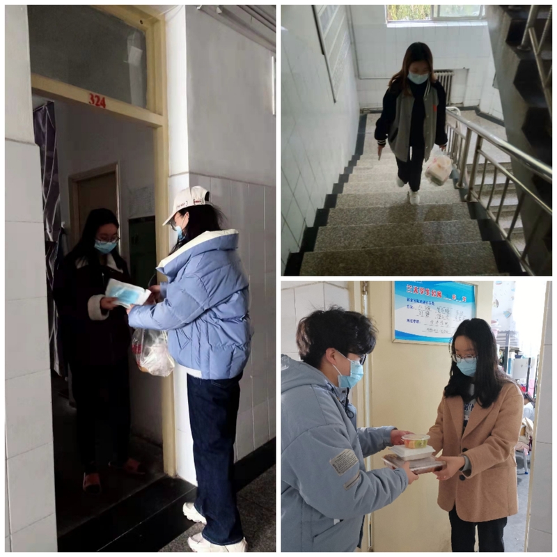隔离不隔爱,爱心暖人心。本轮疫情以来,部分同学因暂时在宿舍需要自我监测,为了保障这部分同学的一日三餐及防疫口罩、消毒酒精等物品及时送达,员工志愿者积极主动报名,愿意为暂时在宿舍监测的同学送去爱心与温暖。志愿者马思忆说:“作为一名青年老员工,就应该冲在最前面,发挥好青年老员工的模范作用。”志愿者们在做好自我防护的前提下,按时从餐厅取餐后,及时送至各位同学手中,保障他们都能吃到热乎乎的饭菜。收到饭菜的张同学说:“谢谢公司对我们的关心,谢谢各位志愿者的辛苦付出,疫情终将会褪去,可暖暖的人心,永远不会!”