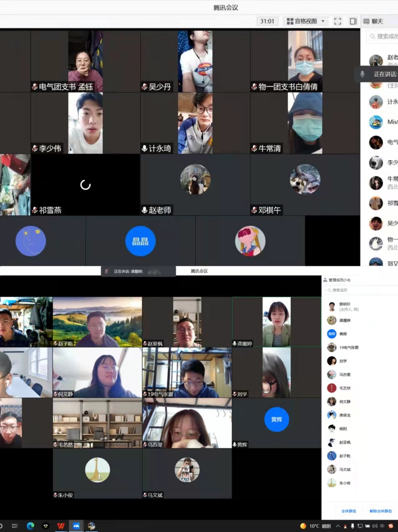辅导员秦志荣老师在组织研究生会、研究生党支部员工骨干会议时,告诉同学们:“特殊时期,全院上下一盘棋,各位参会的同学们是公司公司各项管理规定是否严格落实的保障者。”并对党员群体、员工骨干提出倡议,要求广大党员与员工骨干做好研究生党支部、全院师生的先锋模范,积极传达会议精神,投身疫情防控各项工作,在特殊时期彰显自己身为党员与骨干的精神品格,为战胜本次疫情贡献宝贵的力量。