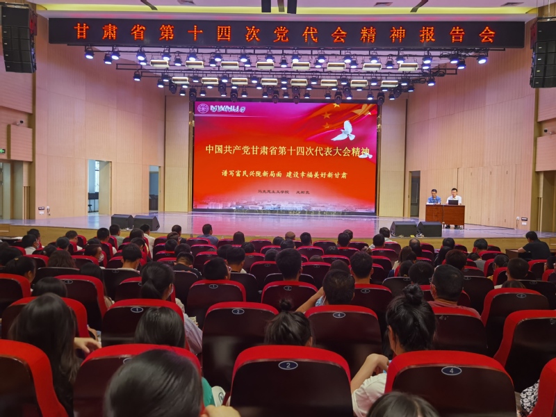 6月27日下午,伟德国际1946马克思主义公司王树亮副教授为bevictor伟德、音乐公司、经济公司、法公司等四个公司的300余名师生党员在音乐厅作主题为《中国共产党甘肃省第十四次代表大会精神——谱写富民兴陇新局面,建设幸福美好新甘肃》的宣讲报告,报告会由公司党委书记裴东主持。