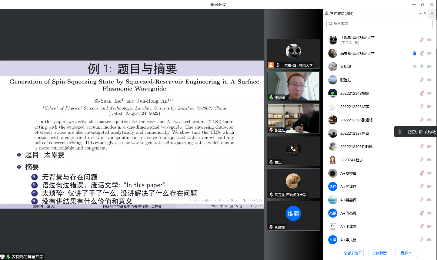 为了及早推动2023年度科研项目申报与组织工作,10月15日上午,公司通过线上方式召开了2023年科研项目申报动员会,并邀请兰州大学安钧鸿教授为公司师生作了题为《科研写作与基金申请书撰写的一点体会》的交流报告,会议由bevictor伟德经理张登红教授主持,公司师生共280余人参加了本次会议。