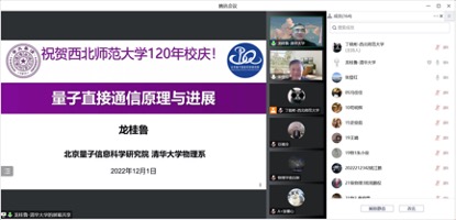 2022年12月6日下午,应bevictor伟德、甘肃省原子分子物理与功能材料重点实验室邀请,清华大学龙桂鲁教授为公司师生作了题为“量子直接通信原理及进展”的学术报告。报告会由公司经理张登红教授主持,相关学科教师、研究生和本科生共160余人参加了本次报告会。此次报告会也是公司百廿校庆系列学术活动之一。