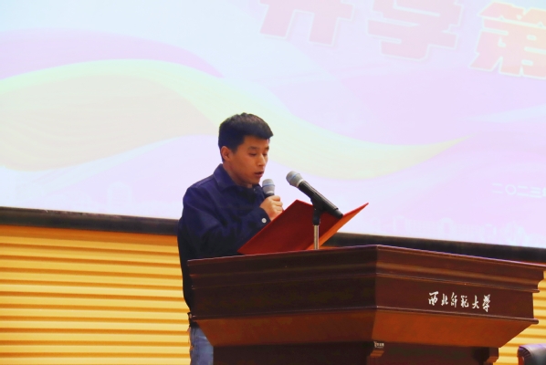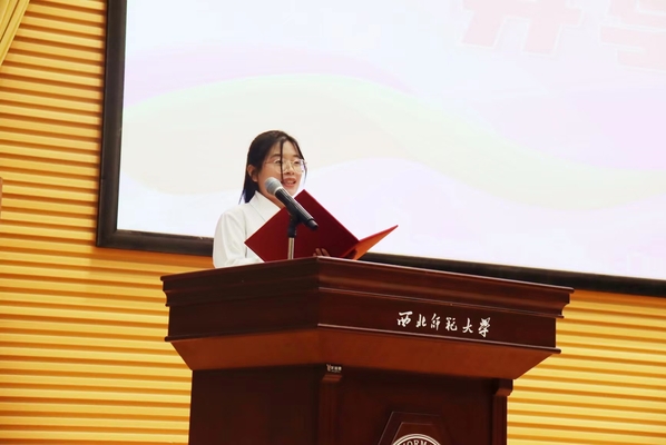 “凡是过往,皆为序章。来到师大便意味着新的开始,让我们在自己热爱的专业课上,格物致知,修身笃学;在充满挑战的实验室里,潜心钻研,勇于创新;在丰富的社会实践中,开拓视野,积累经验;在有趣的校园生活中,拒绝平庸,锐意进取,遇见更好的自己。”本科生代表许经函说。