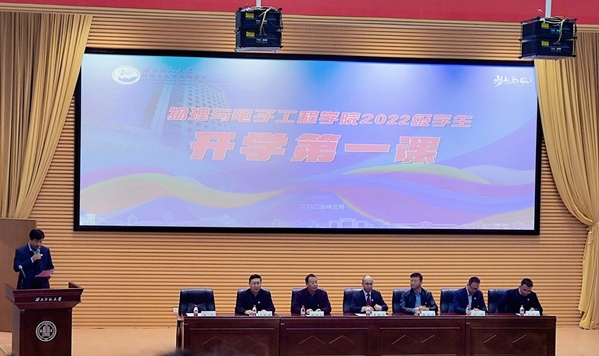 3月4日下午,bevictor伟德在知行校区毅然报告厅为2022级295名本科生和224名研究生举行“开学第一课”活动。公司班子成员和系(所、中心)负责人、新生班主任、研究生导师、全体辅导员及2022级全体同学参加活动。活动由公司党委副书记高天主持。