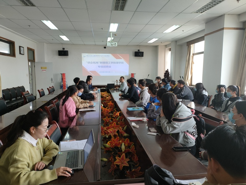 会上,高天介绍了公司2023届物理类硕士研究生毕业生的基本情况,鼓励毕业生同学们开拓视野,向西向下积极就业,到祖国最需要的地方建功立业,实现自己的人生理想。王晓斌详细介绍了新疆理工公司理公司的发展目标和人才引进基本情况。